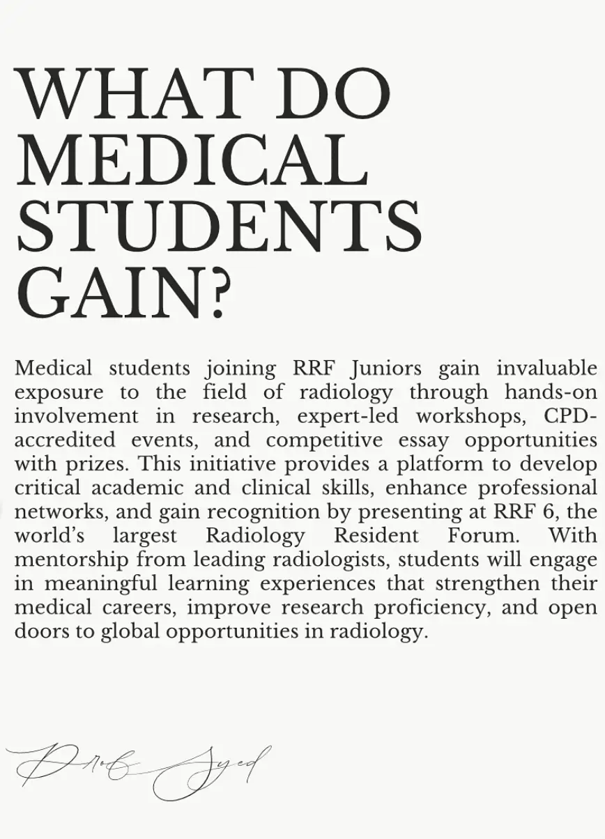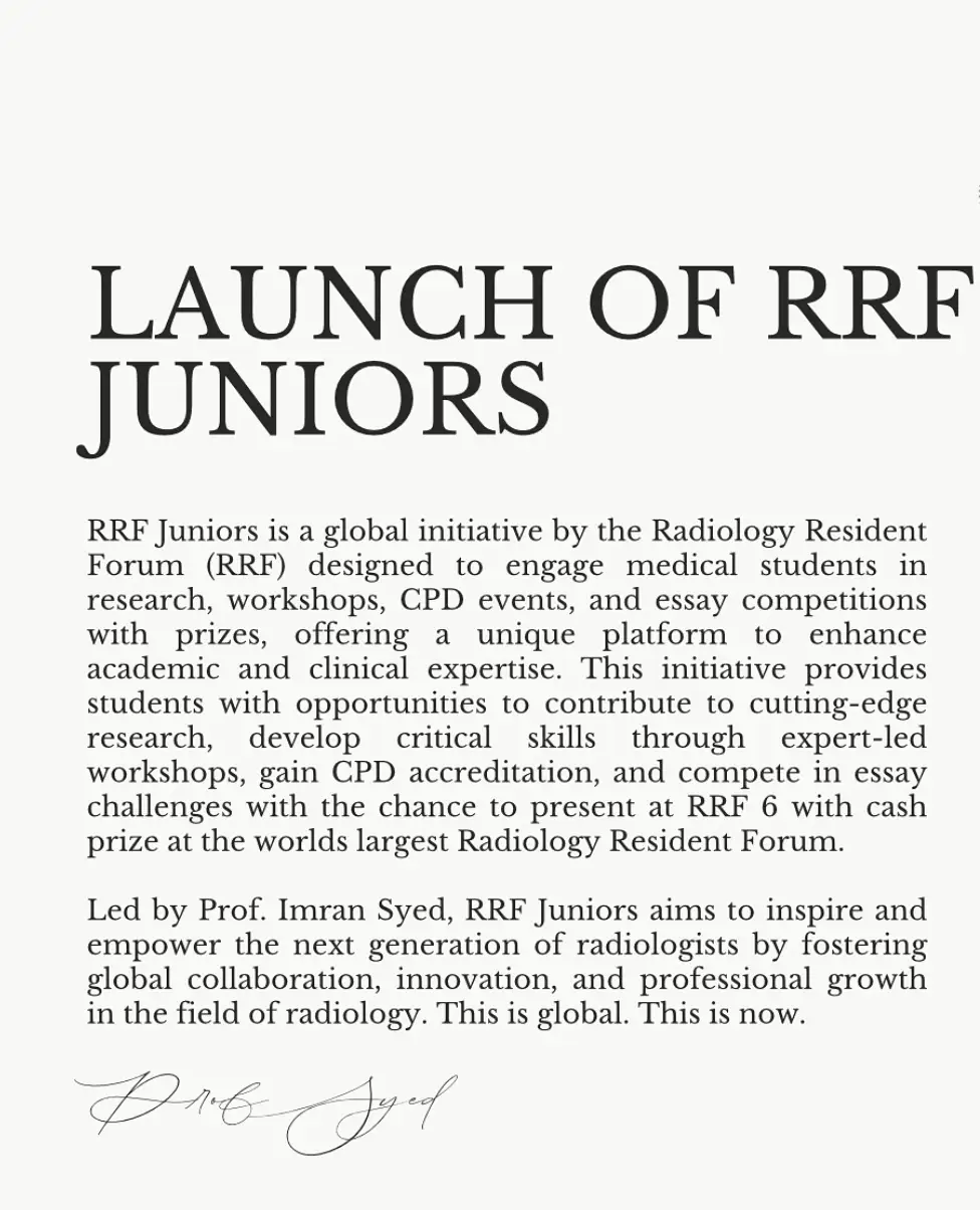 RRF Juniors is the dedicated outreach branch of the Radiology Resident Forum (RRF), focusing