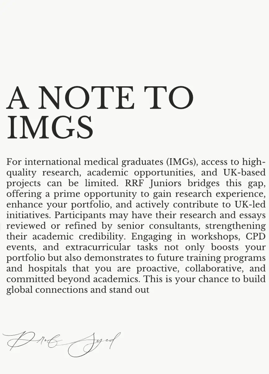 By joining RRF Juniors, medical students become part of a global community dedicated to fostering